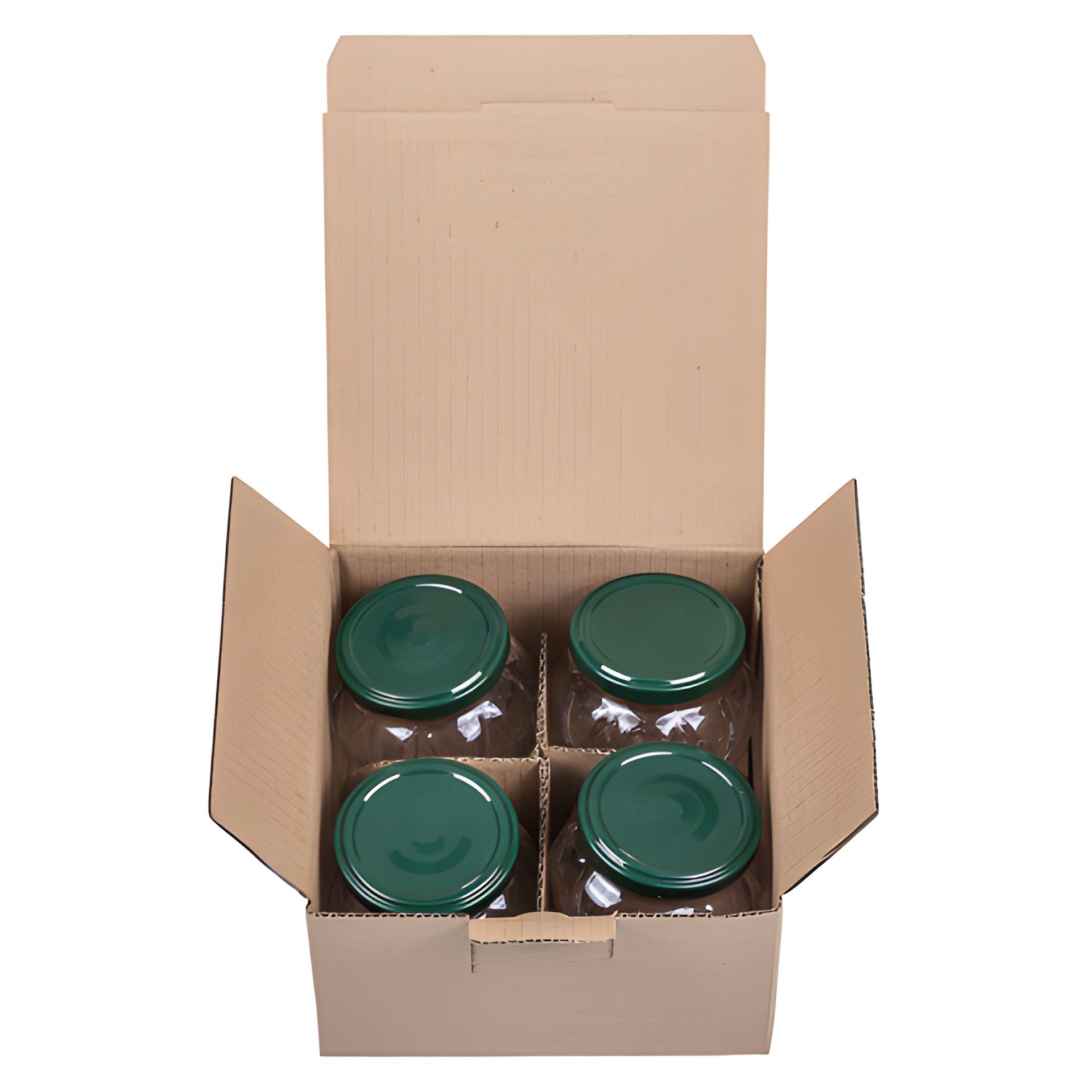 Die Abtrennungen im Karton sorgen für einen stabilen Halt und verhindern gleichzeitig den direkten Kontakt der Gläser. So können alle Einmachgläser sicher und ohne Schaden transportiert werden. Zudem lässt sich der Versandkarton schnell und einfach zusammenfalten, sodass er gleich einsatzbereit ist.
