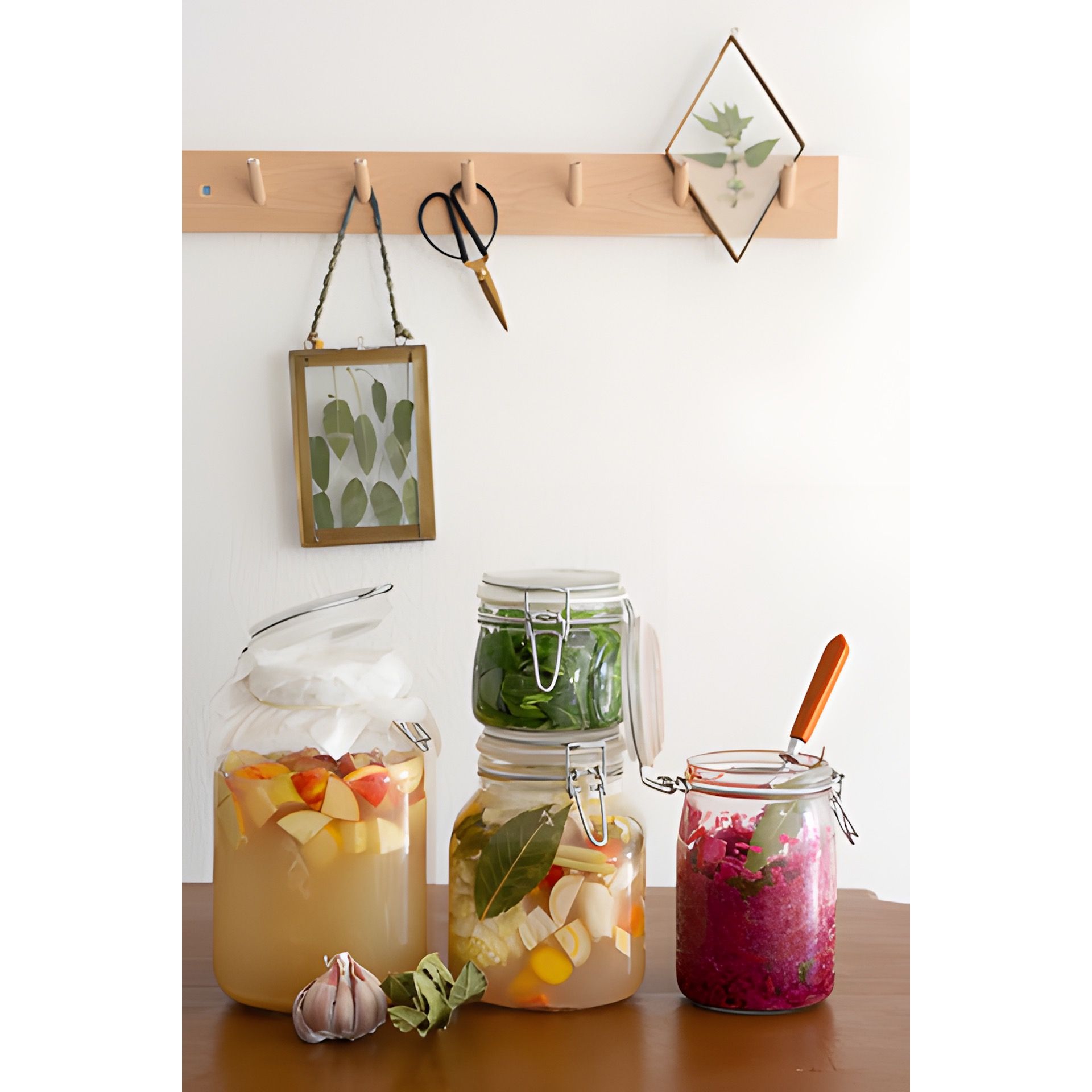Praktisches Set mit Bügelgläsern in 4 verschiedenen Größen, inklusive Etiketten. Inspiriert durch Syl Gervais, deren Leidenschaft es ist, Gemüse und Obst durch Fermentation haltbar zu machen. Milchsauer vergorenes Gemüse, selbst hergestellte Essige, probiotische Getränke und Aufstriche sind nicht nur lecker, sondern fördern auch unsere Darmgesundheit. Ob klassisches Sauerkraut, buntes Gemüse, Essig aus Apfelresten oder Erdbeeren, Wasserkefir, Kombucha, Shrub oder Kimchi - Gemüse, Obst und deren Bakterien gehören in gute Gläser gepackt. Bügelgläser eignen sich besonders gut zum fermentieren und so hat Syl ein individuelles Set zusammengestellt, das perfekt auf ihre Fermentations-Kurse zugeschnitten ist. Natürlich eignen sich die Gläser auch für alle anderen Arten des Einlegens und Vorrathaltens.