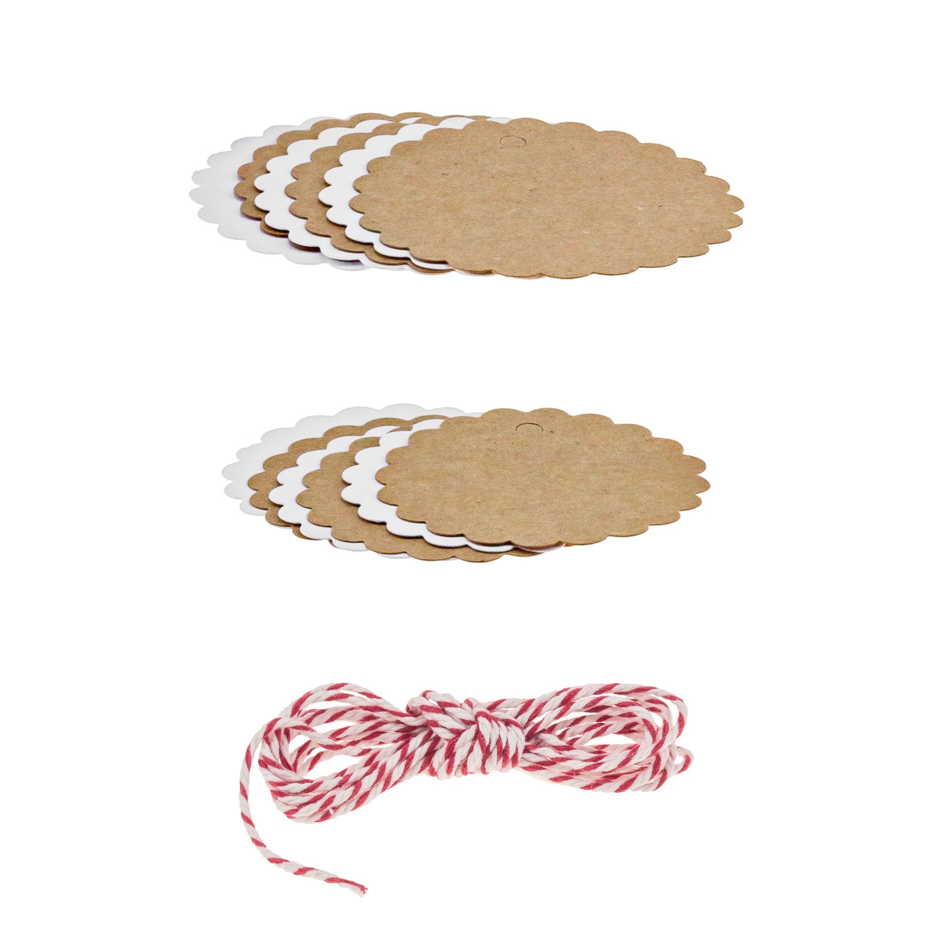 12 hübsche, nostalgische Anhänger in jeweils zwei Größen zum Beschriften und Dekorieren, inkl. 2 m Schnur.