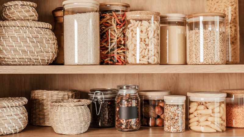 In Korkengläsern könnt Ihr hervorragend trockene Vorräte lagern. Dazu können beispielsweise zählen: