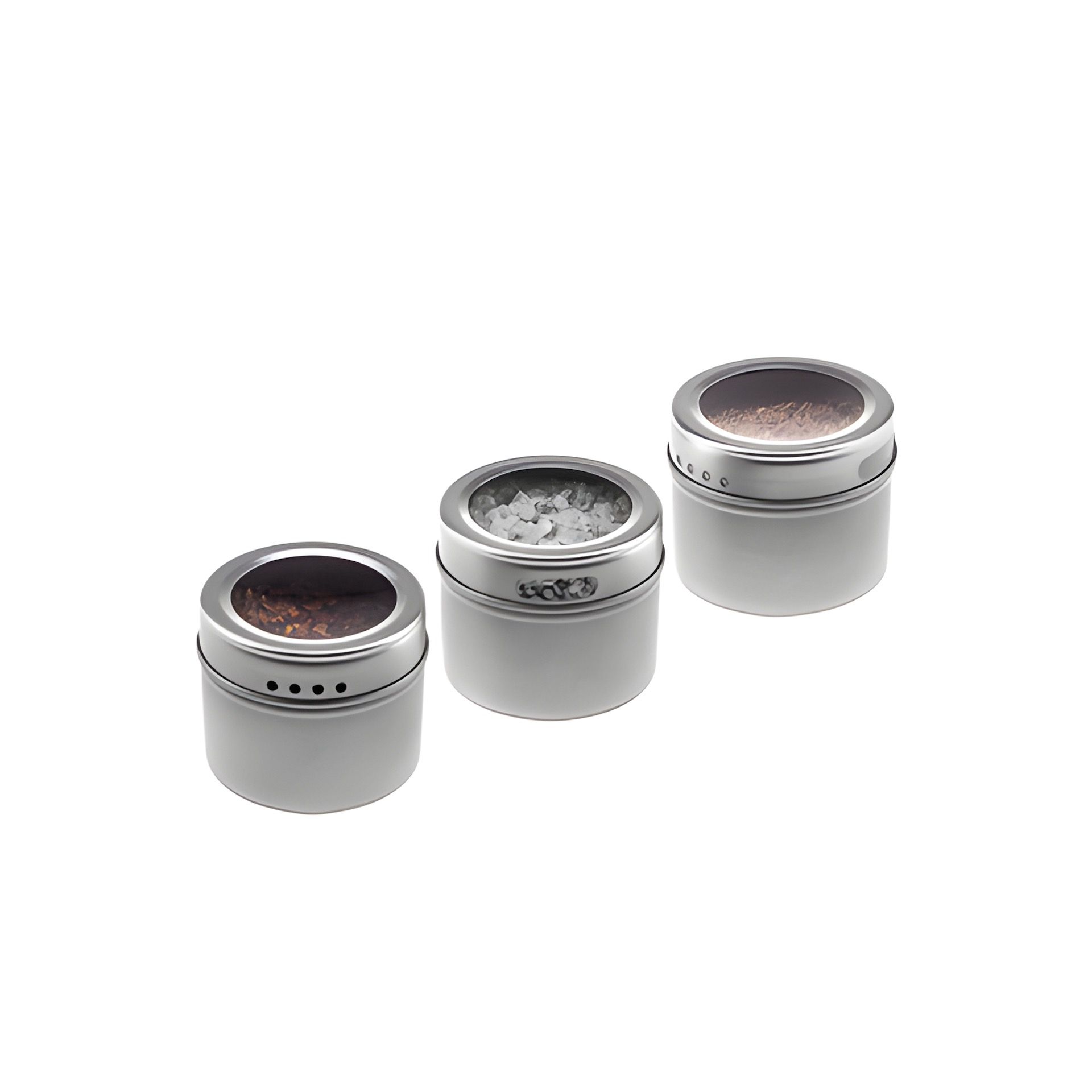 Magnetische Aufbewahrungsdosen für Kräuter, Gewürze oder Kochutensilien sind überaus praktisch. Das Besondere ist nicht nur dass sie magnetisch ist, sie hat auch eine super handliche Form, sodass das kleine Döschen platzsparend an Magnetleisten oder am Kühlschrank angebracht werden kann. Durch ihren transparenten Deckel ist der Inhalt leicht einsehbar und dreht man ihn an die entsprechende Position, wird die Dose im Handumdrehen zum Streuer.