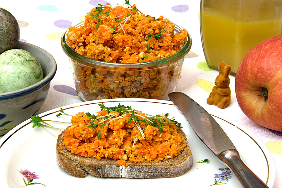 An Ostern darf geschlemmt werden, das geht aber auch gesund und ohne unnötige Kalorien. Dieser Möhrenaufstrich ist lecker und leicht, also genau richtig für die ersten Frühlingstage.
